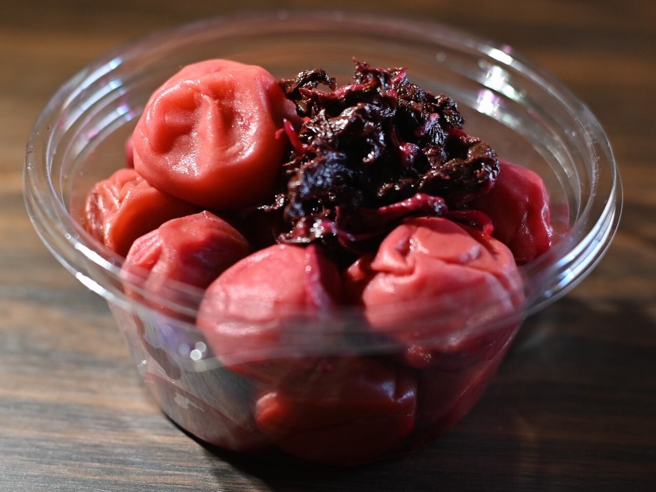 梅干しは15%(普通の梅干は22%程度)の塩で漬け込み天候を見ながら天日干しをして仕上げています。甘くない梅干しです。